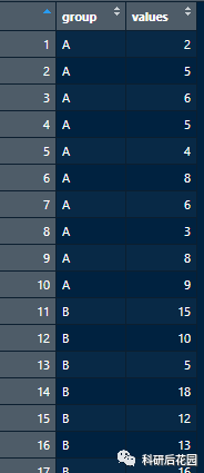 gather(key = 'group',value = 'values') #gather()函数可以把多列数据合并成一列数据