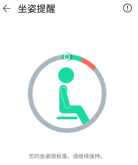 这个提醒功能特别适合长时间在电脑面前工作的人群,比如设计师、学生、文员等。他的工作原理,我们通过App里的画面就能一目了然的了解了。这个圆环上的绿色是安全范围,你前后移动头部,那个小圆点就会跟随移动,当超过绿色范围进入橘色范围的一瞬,按摩器就震动了。