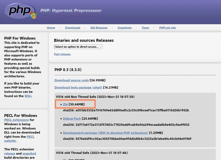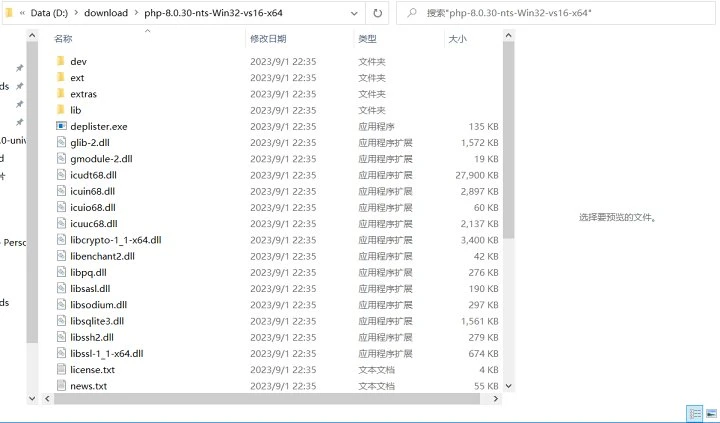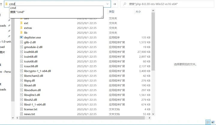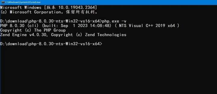 验证是否安装成功可在安装目录输入"cmd"进入命令提示符输入"php.exe -v"来查看是否安装成功,如显示正确版本号,如图下即为成功: