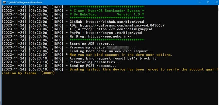 解锁工具仍然提醒等待168/360(或以上)小时:原则上,此PoC仅绕过为Hyperos添加的限制。你仍然需要遵守MIUI的限制,脚本只是绕过社区5级+答题的限制,并非直接解锁,解锁请使用官方小米解锁工具。
