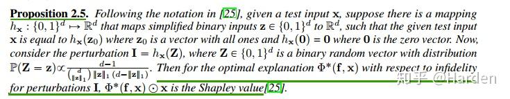 此时最佳解释函数 \Phi^*(f,x) 与输入 x 的逐点乘积等于Shapley value [8]