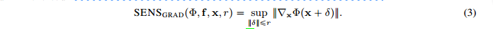 可得基于梯度的敏感性分数 SENS_{grad}(f,x,\Phi,r) 的公式表达为: