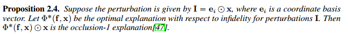 此时最佳的可解释性函数可以认为是occlusion-1 explanation [7]