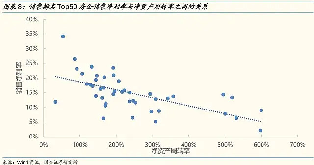 以公司购买100单位的土地为例,所支付价格全部计入当期成本,作为分母的总资产也跟随扩大,但由于限购条件,当年只售出10单位土地,只有这10单位的销售收入计入分子。随后每年都售出10单位,分子不断变大,但分母却保持不变,总资产周转率会不断提高。