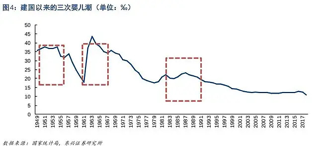 伴随着建国后第一波“婴儿潮”的人走到生命终期,第二波婴儿潮(60、70年代出生)开始进入集中退休期;第三波婴儿潮的80后将超过35-40岁,即逐渐失去“黄金生育年龄”,加上90后生育意愿不高,中国在未来5-10年内,将迎来人口转型的拐点。