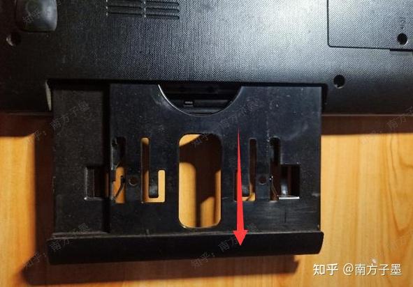 为了把这个拆下来的硬盘利用起来,我们就需要拆下假光驱,旋下上面中间位置的螺丝,可以直接拉出来.