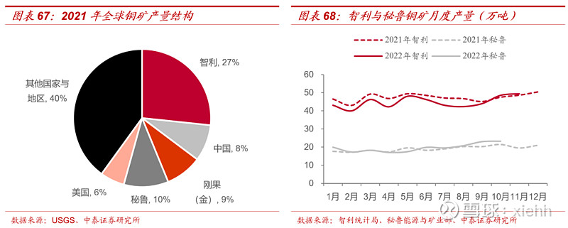 社区抗议、环境等问题对铜矿短期形成扰动。 全球铜矿供给主要集中在秘鲁和智利,根据USGS,2021年智利与秘鲁的铜矿产量在全球产量中的占比分别为27%与10%,因此秘鲁和智利在铜矿端的扰动将直接影响全球铜矿供给。2022年智利和秘鲁均出现新一轮疫情,对铜矿产量形成扰动。另外,铜价快速攀升的背景下,当地社区认为矿产的经济利益并没有流入到自己所在社区,以及环保诉求的影响下,导致秘鲁铜矿生产地出现抗议行为,停产事件激增。智利方面,铜月度平均产量不及去年同期,则主要受矿石品级下降、干旱缺水、设备检修等问题的干扰而影响生产。