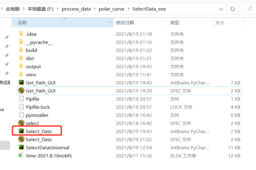 其中Select_Data.py 是笔者的主程序名称,你可以根据自己的主程序不同而变成不同名称;