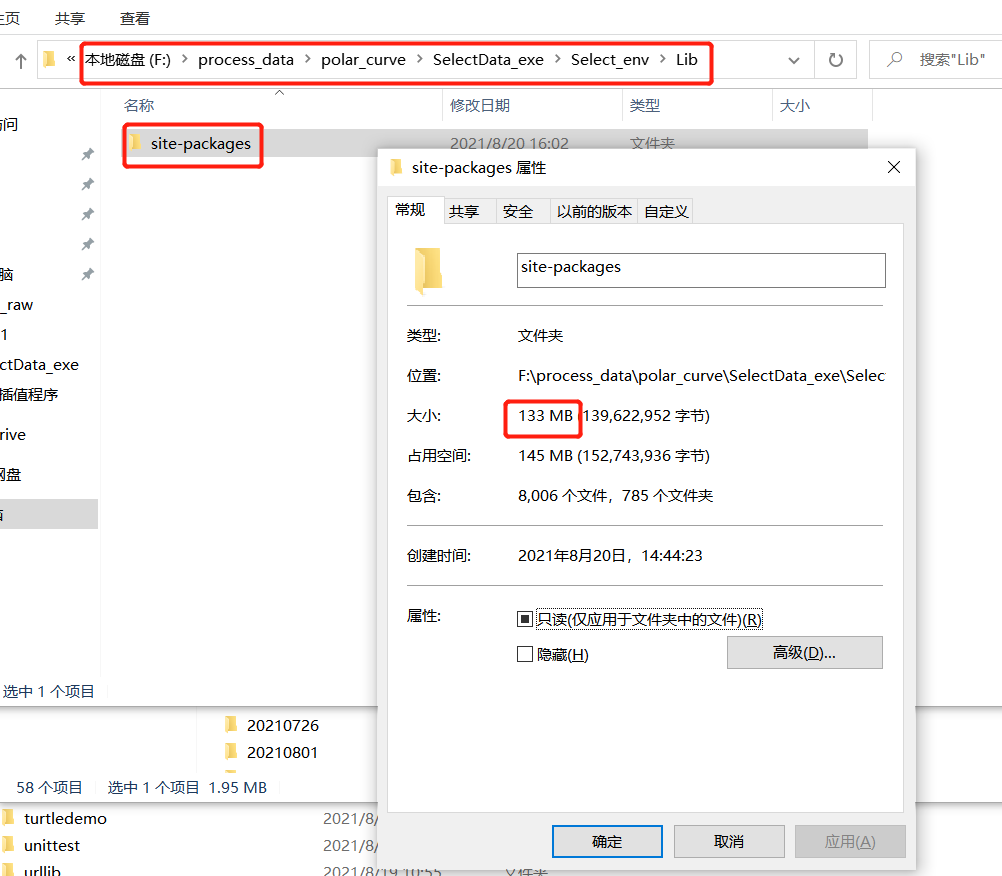 解决方法: 创造新的虚拟环境,安装自己需要的库,根据虚拟环境路径找到包的大小见下图,只有133M。