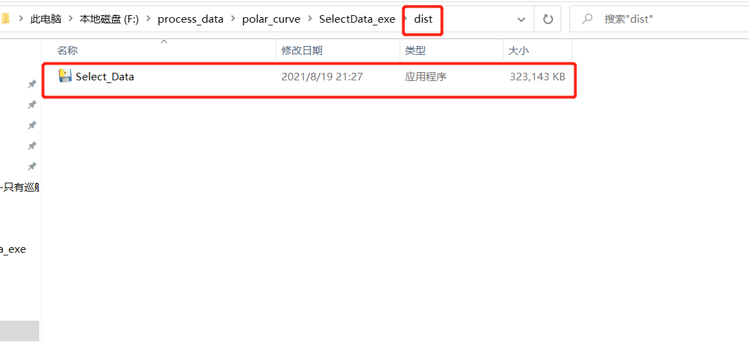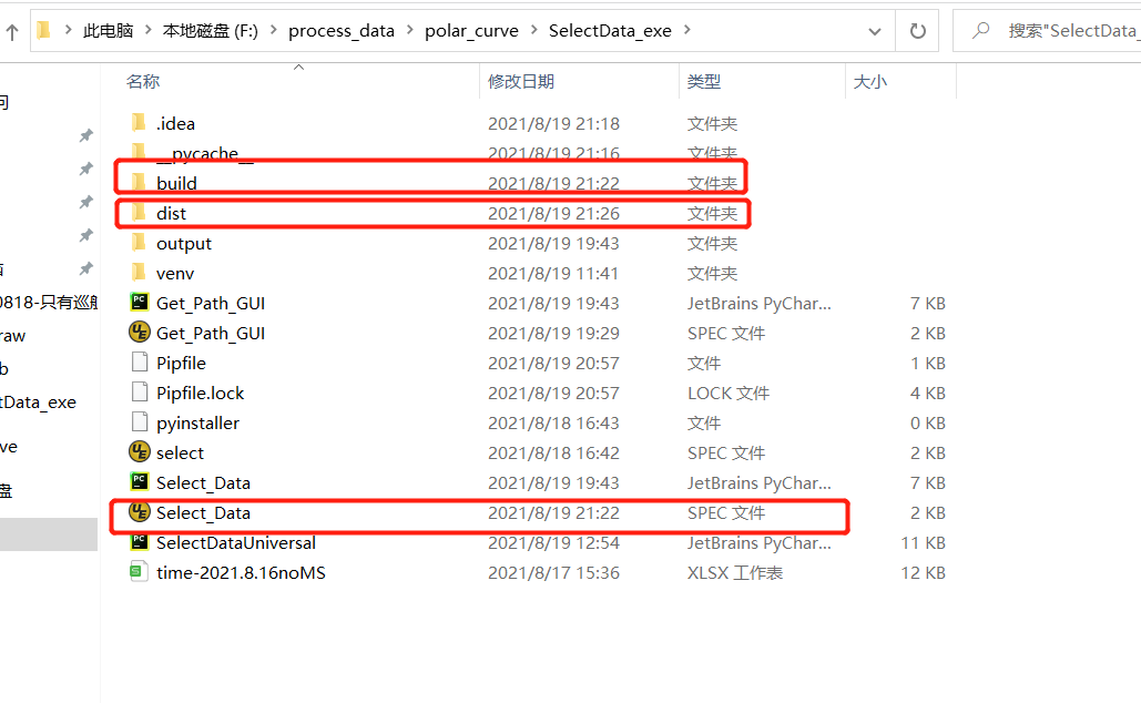 运行完成会多出如下几个文件,用红框标出,其中需要的exe文件在dist文件夹中
