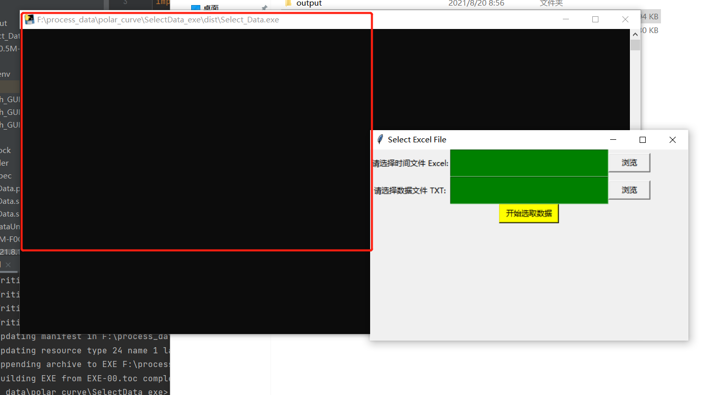 下图是执行pyinstaller -F Select_Data.py,不带-w生成Select_Data.exe,笔者运行该exe后发现有个大黑框。