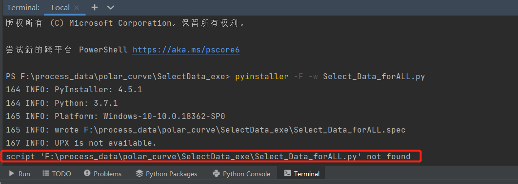 4 执行pyinstaller -F Select_Data_forALL.py报脚本文件未找到错误