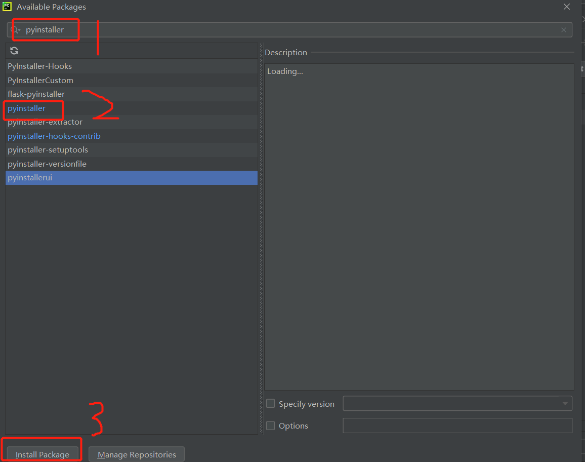 3 检索pyinstaller ,选中点击安装