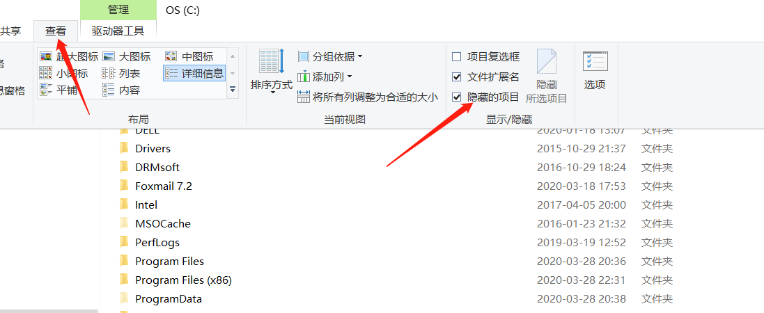 3.2、在C盘中取消隐藏的项目,这个地方我卡了很久。