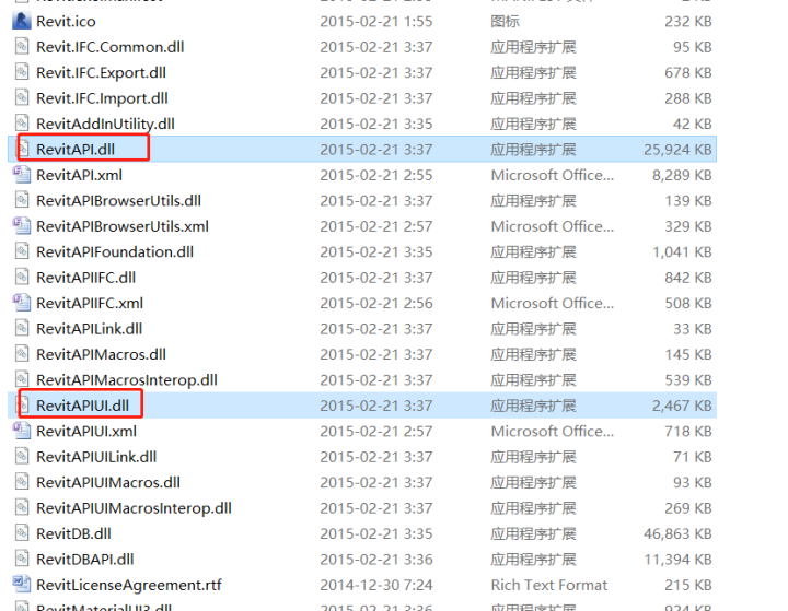 6、在程序中引用Revit的两个dll,分别是RevitAPI.dll、RevitAPIUI.dll,它们在Revit的安装目录中,如下图所示