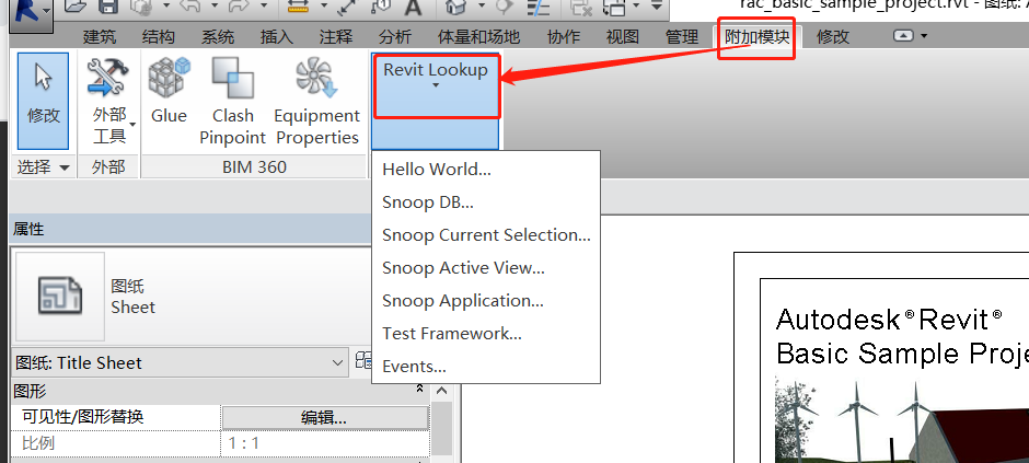 4.7 重启Revit,可以在【附加模块】/ Revit Loopup查看