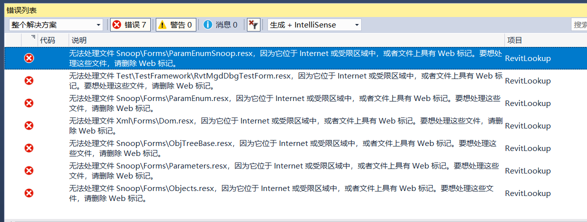 无法处理文件 MainForm.resx,因为它位于 Internet 或受限区域中,或者文件上具有 Web 标记。要想处理这些文件,请删除 Web 标记