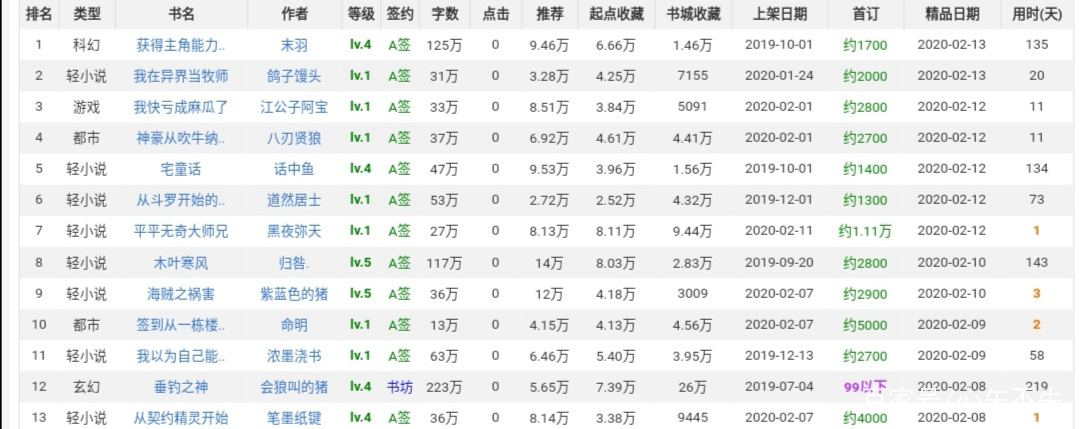 从二月八日第一本《从契约精灵开始》到二月十四日,共有13本小说成功加入精品小说序列。