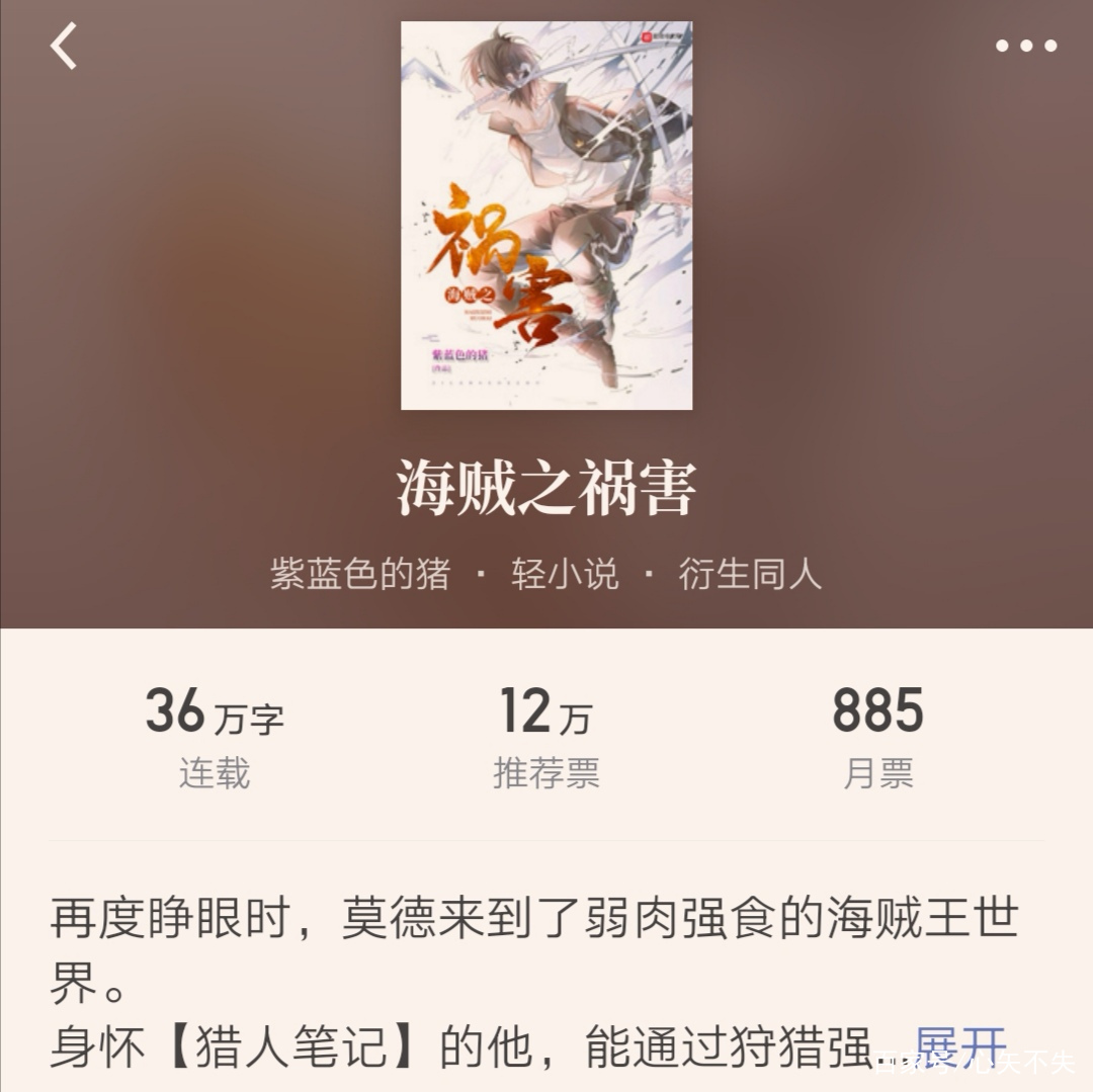 作者主打同人文作品有“刀剑”、“火影”、“全职猎人”再加上这本“海贼王”三个系列的同人文了,算是同人文大佬了。