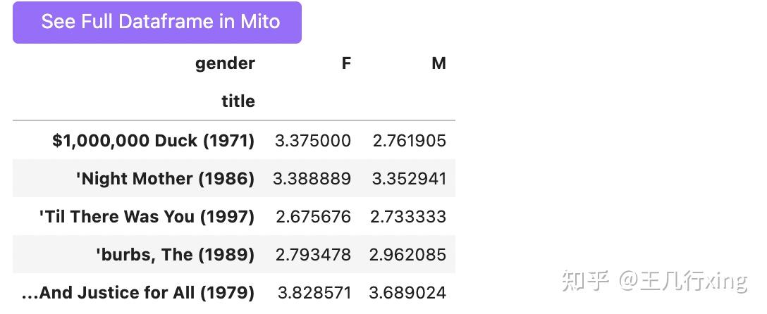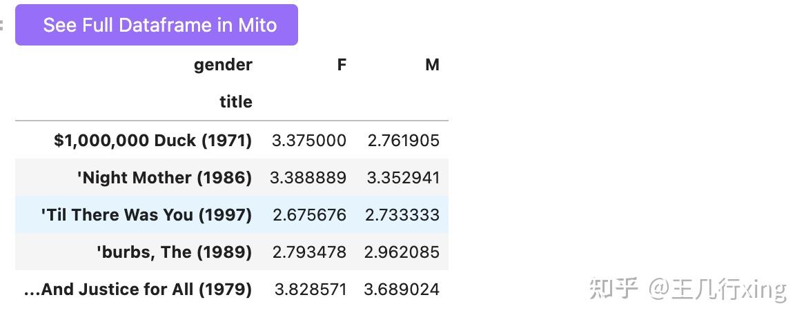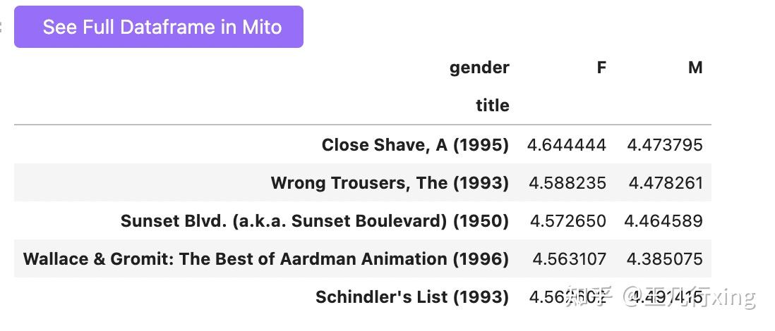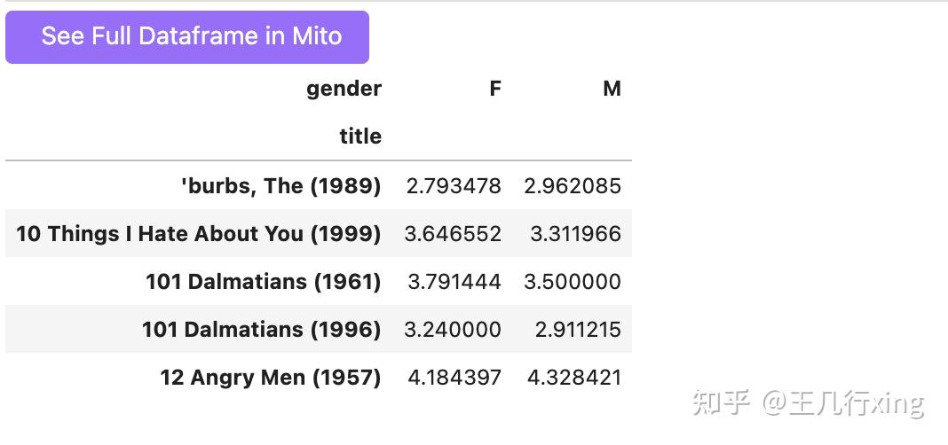 mean_ratings.index ## 电影的标题(分组变量),变成了透视表的行索引;列分组变量性别的取值,变成了列的索引