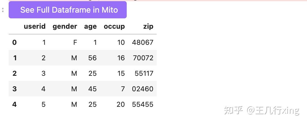 names=['userid', 'gender', 'age', 'occup', 'zip'])