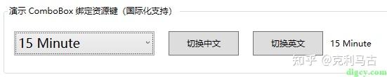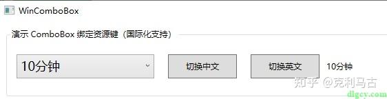 <GroupBox Header="演示 ComboBox 绑定资源键(国际化支持)" Height="100">