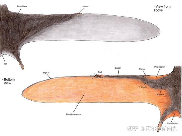 同样为达到减重的目的,再看看哺乳纲-翼手目的蝙蝠又是如何做的呢?虽然并没有进化出尾综骨,但它们原本细长的尾骨也不同程度的萎缩退化,只剩很短的一小截,从而使其身体结构更加满足适应飞行所必需的运动机能。