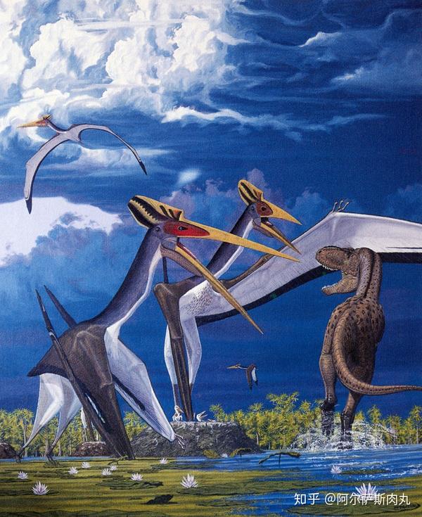 这是一幅典型的中生代生态画卷:翼龙和恐龙分别统治着天空和陆地,海洋也成也各色蜥形纲的竞技场,它们是各自领域的绝对王者,共同造就出一副瑰丽的盛世景象。