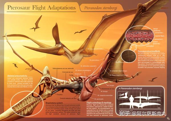 作为异常特化的种群,这些大型翼龙同鸟类一样,也演化出气囊呼吸循环系统,它们的骨骼壁大多中空且布满毛细血管以便充盈空气,最大限度的减轻体重。与此同时,这也导致其骨壁变得极其脆弱,根本无法通过扑翼的方式振动翅膀产生动力进行飞行,只能借助上升气流来滑翔。