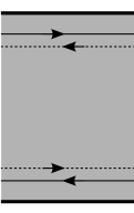 具有时间反演的体系,其边缘态总是分为可以 通过内禀自由度label 的两支,其速度 v_{l,\pm}=\frac{dE(k)}{dk}| _{k=k_{l,\pm}} 相等但反向,大致同下: