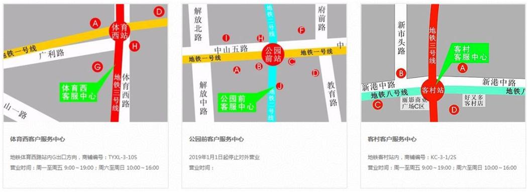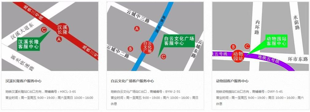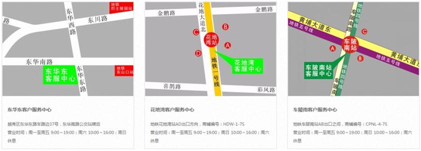 它们包括有东华东客户服务中心、人民北客户服务中心,还有十家位于地铁站内的客户服务中心,具体地址及营业时间点击以下图片查看。