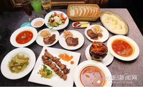 齐齐哈尔烤肉、哈尔滨俄式西餐、横道河子筋饼以及东北炖菜等。