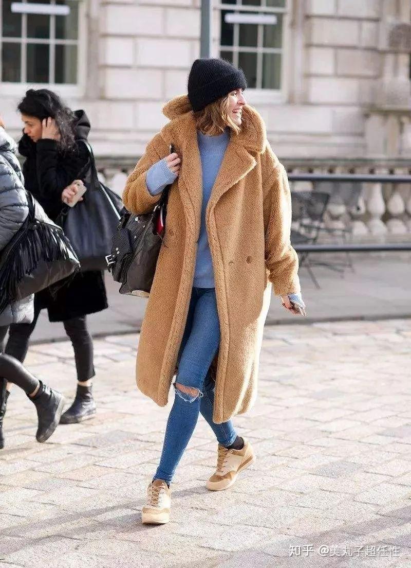 所以如果在这个冬天你想既保暖又时髦,那可以入手一件泰迪熊外套,百搭款从棕色廓形款式入手,个子矮的姑娘可以选择短款修身款,如果要选择长款请和高跟鞋或者高跟靴子搭配;高个子女生没有什么禁忌,长款短款都可以选择,搭配运动鞋更休闲。