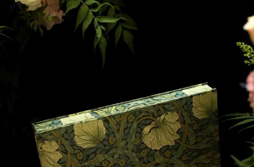 设计师说:“常见的图书多为单色布料上烫制金色或银色的书名,但是为了实现这本书对于极致美的追求,我们希望尝试多种布料和烫金色号,尽量完美的展现出莫里斯的花纹之美。”