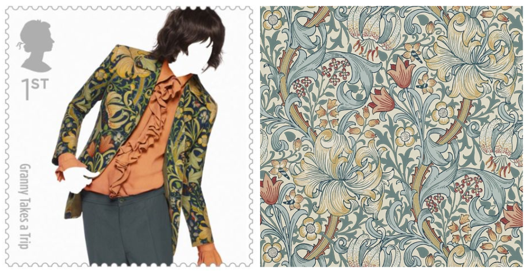 2012年,英国皇家邮政公司推出一套英伦时尚纪念邮票,记录二战后英国时尚界的流行变化,Granny Takes A Trip的
