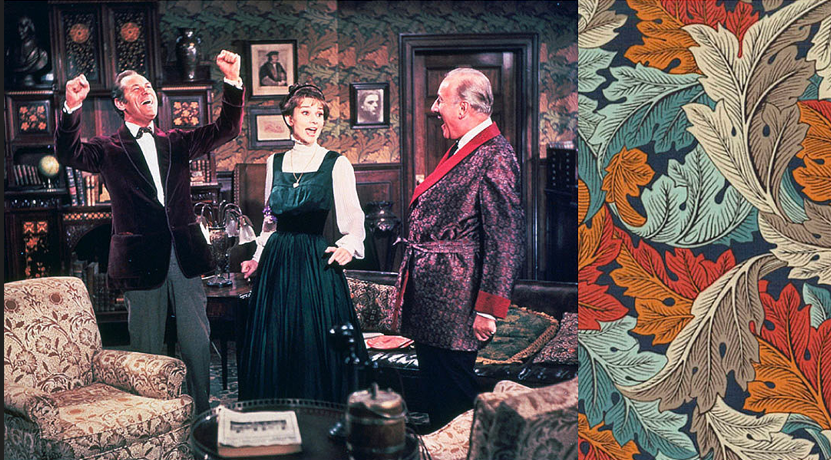 1964年,奥黛丽·赫本主演的奥斯卡获奖电影《窈窕淑女》中的壁纸,同样使用了《莨苕》,瞧瞧这扑面而来的高级感和复古感~