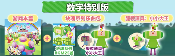 「数字特别版」包含「人见人爱的块魂 安可+国王大人的小小回忆」游戏本篇与服装道具:小小王子、块魂系列音乐包。