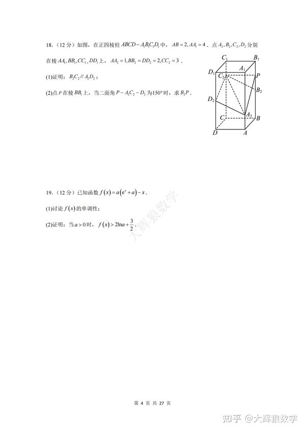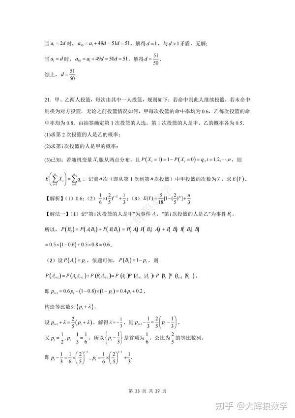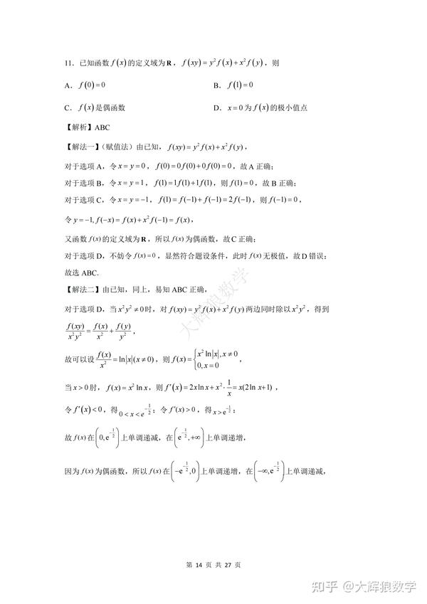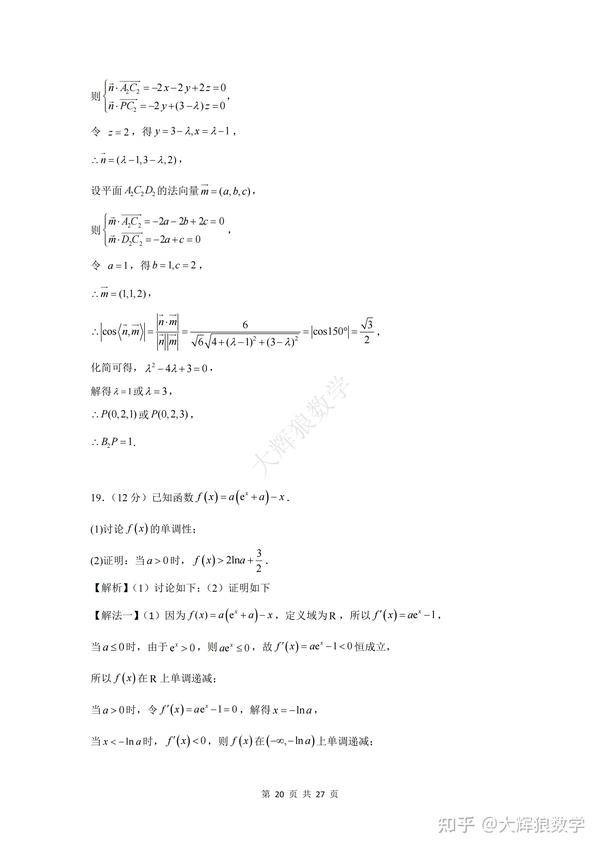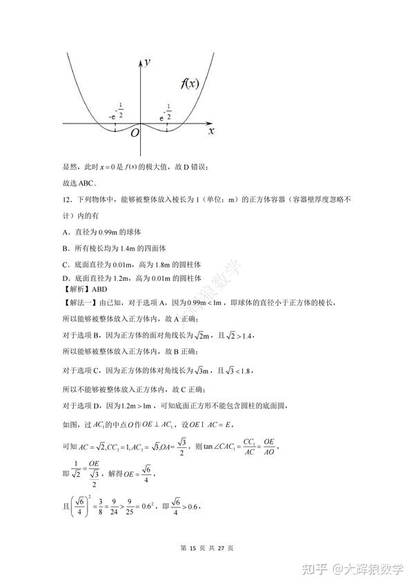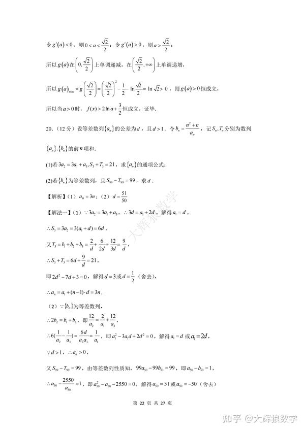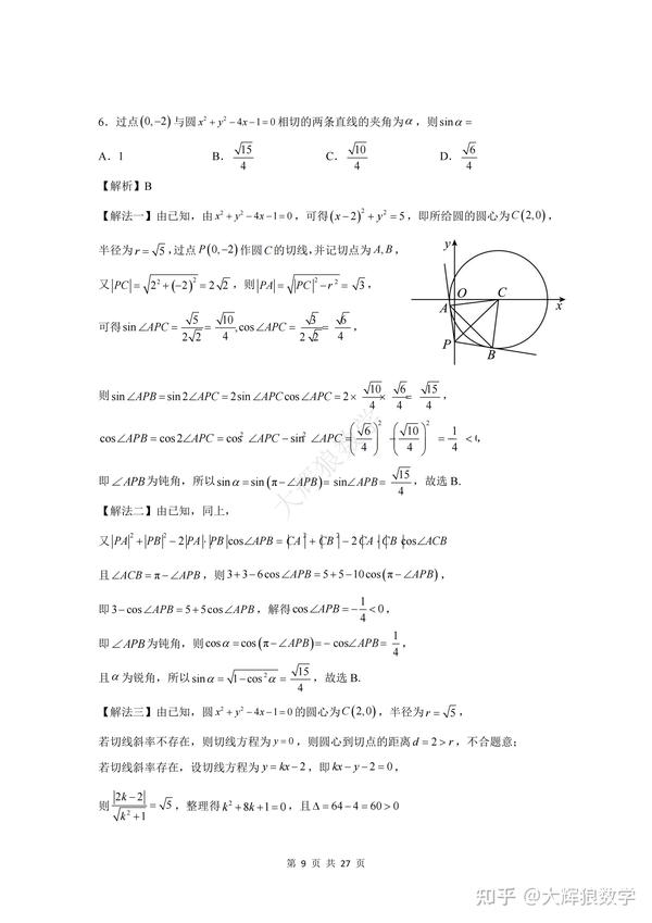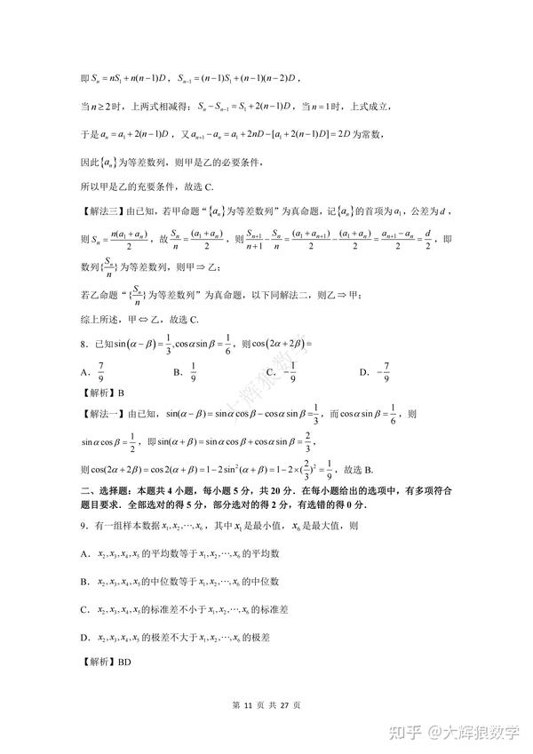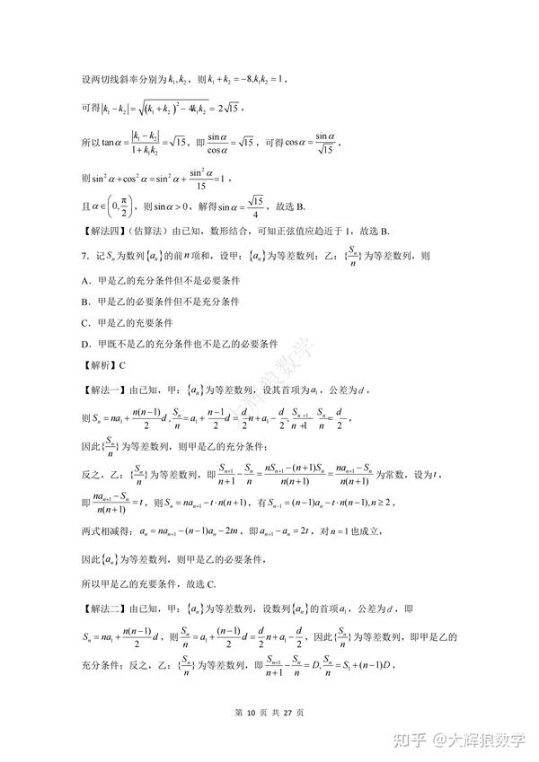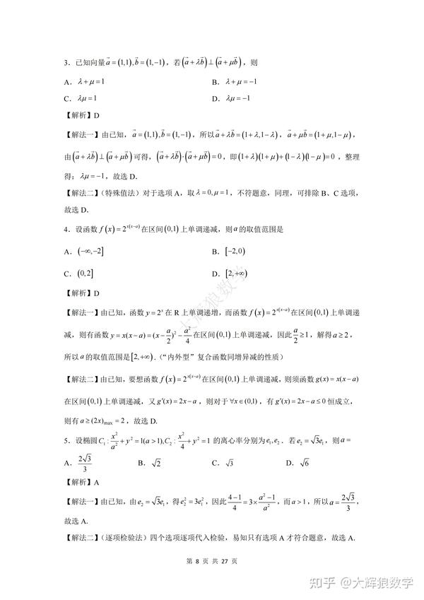 为了方便大家更好地复习备考,特地写了这份数学试卷的逐题详细解析,希望能对大家的备考起到更好地助推作用,但由于时间精力有限,如有错误,敬请指出,非常感谢!