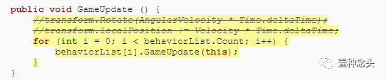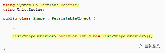 现在,我们将所需的组件添加到形状中,但是它们已停止移动和旋转。那是因为我们还没有调用必需的GameUpdate方法。为此,它需要追踪它身上的其行为组件,我们为其提供一个列表字段。