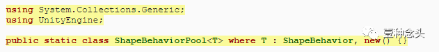 要回收行为,我们必须将其放入池中。每个行为都有其自己的类型,因此应获取自己的池。为此,我们将创建一个通用的ShapeBehaviorPool