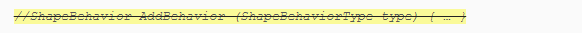但是,仅当AddBehavior与扩展ShapeBehavior的类型一起使用时,它才有效。要强制执行此约束,请在方法名称后写T:ShapeBehavior。