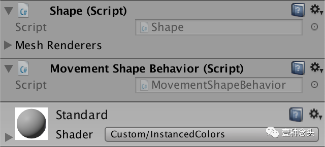 可以使用切换按钮来控制形状的功能,但这会使带有所有可能行为的切换按钮和配置选项的Shape代码膨胀。理想情况下,行为是模块化的,可以单独定义。这正是Unity的MonoBehaviour提供的功能,因此将每个行为模式实现为自己的Unity组件是有意义的。