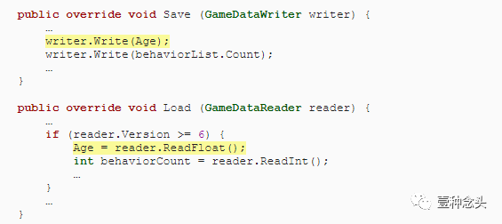 Age也应保存和加载。将其直接写在行为列表之前。