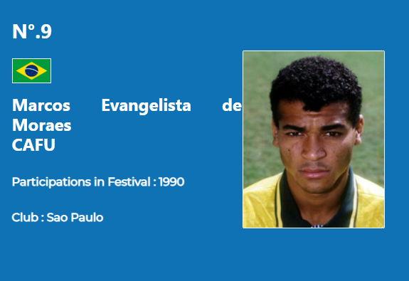 ▲土伦杯官方评选的参加过赛事的百大球星,卡福排名第九。