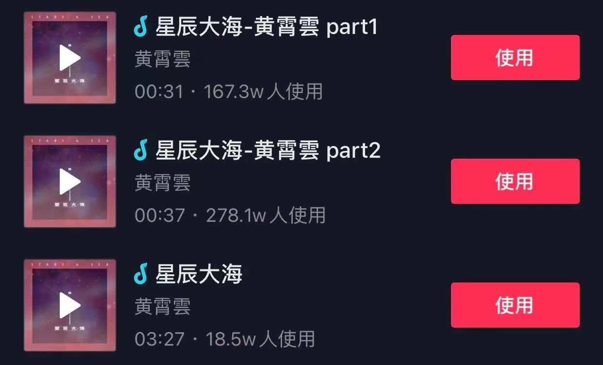 ▲ 在某短视频平台,《星辰大海》原版的使用量就超过了400万