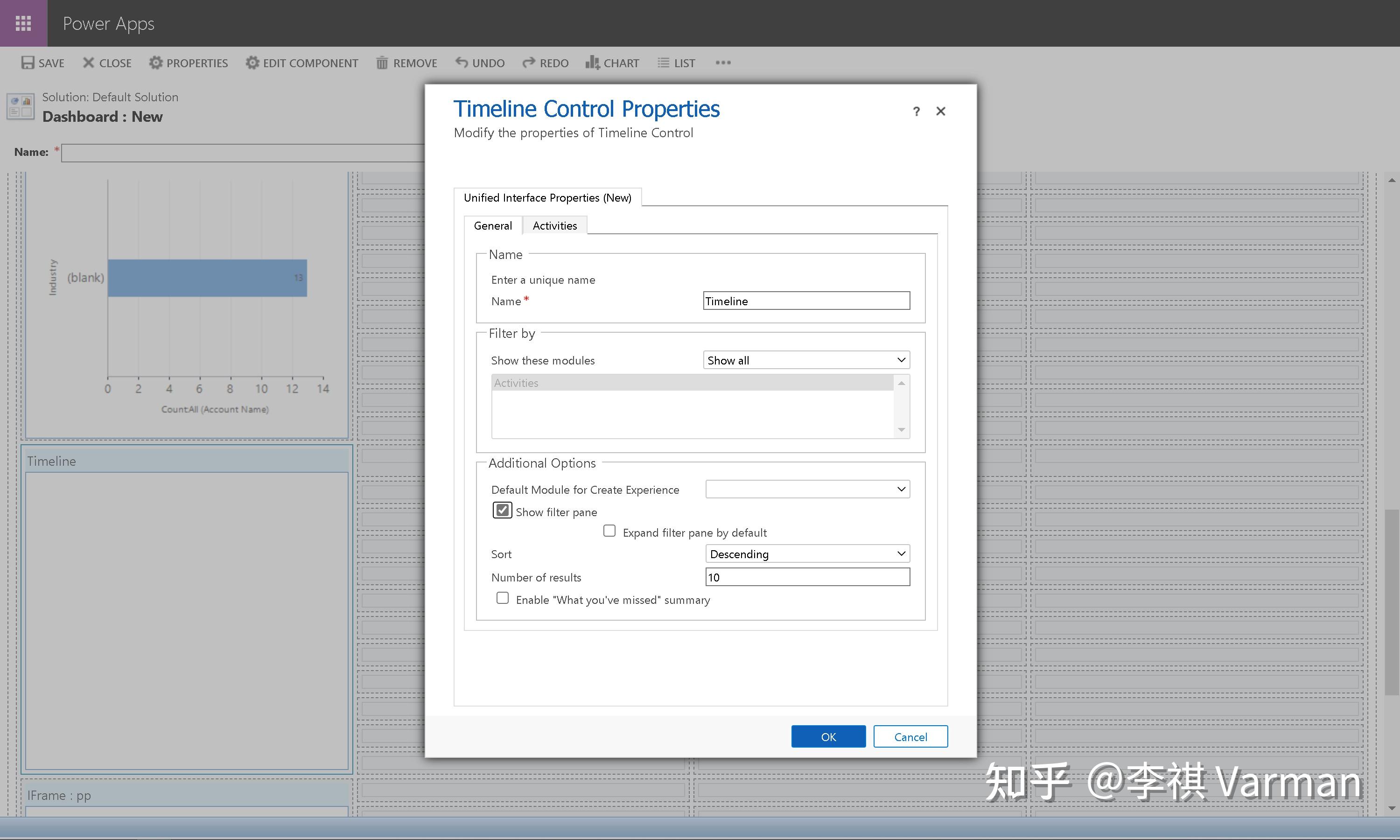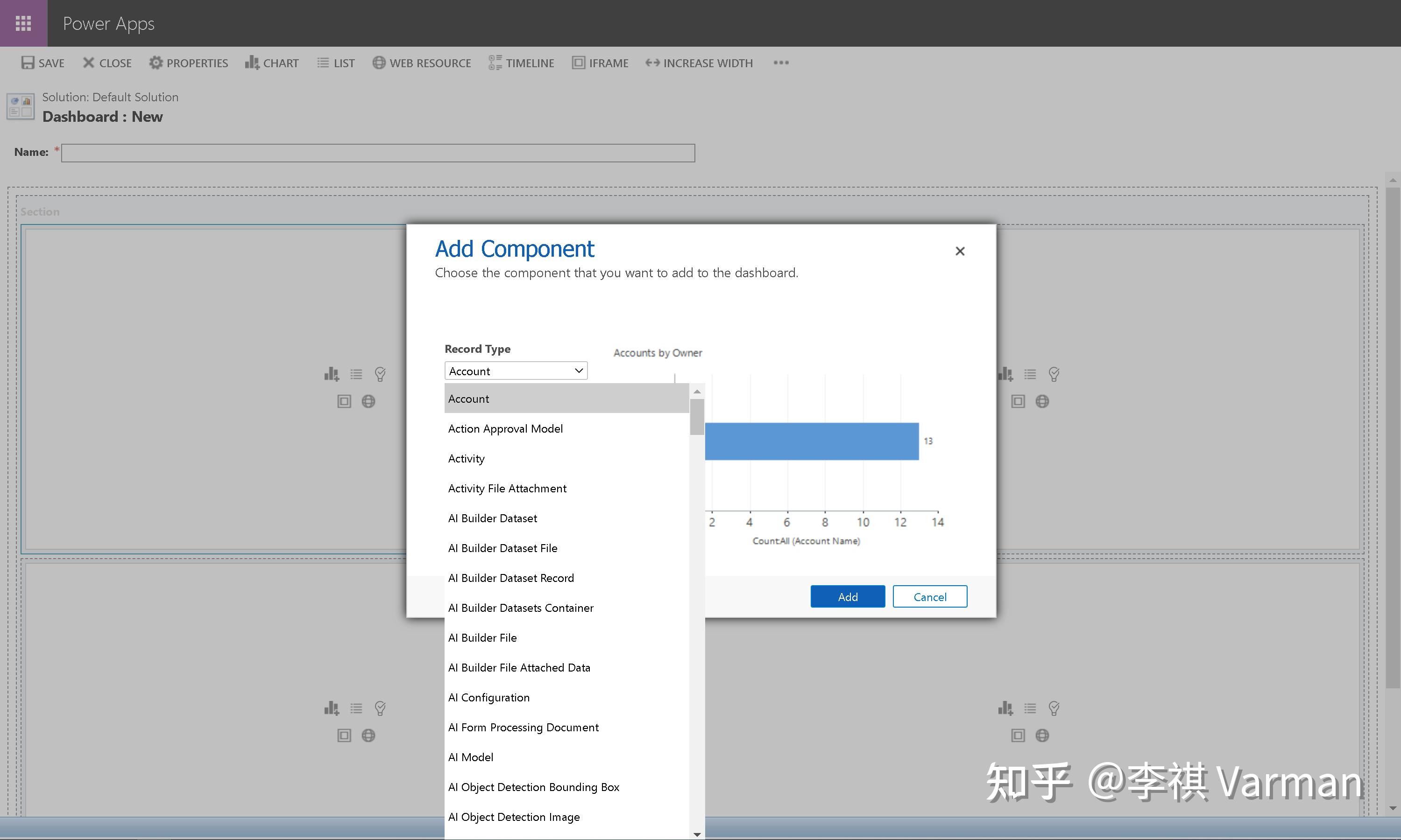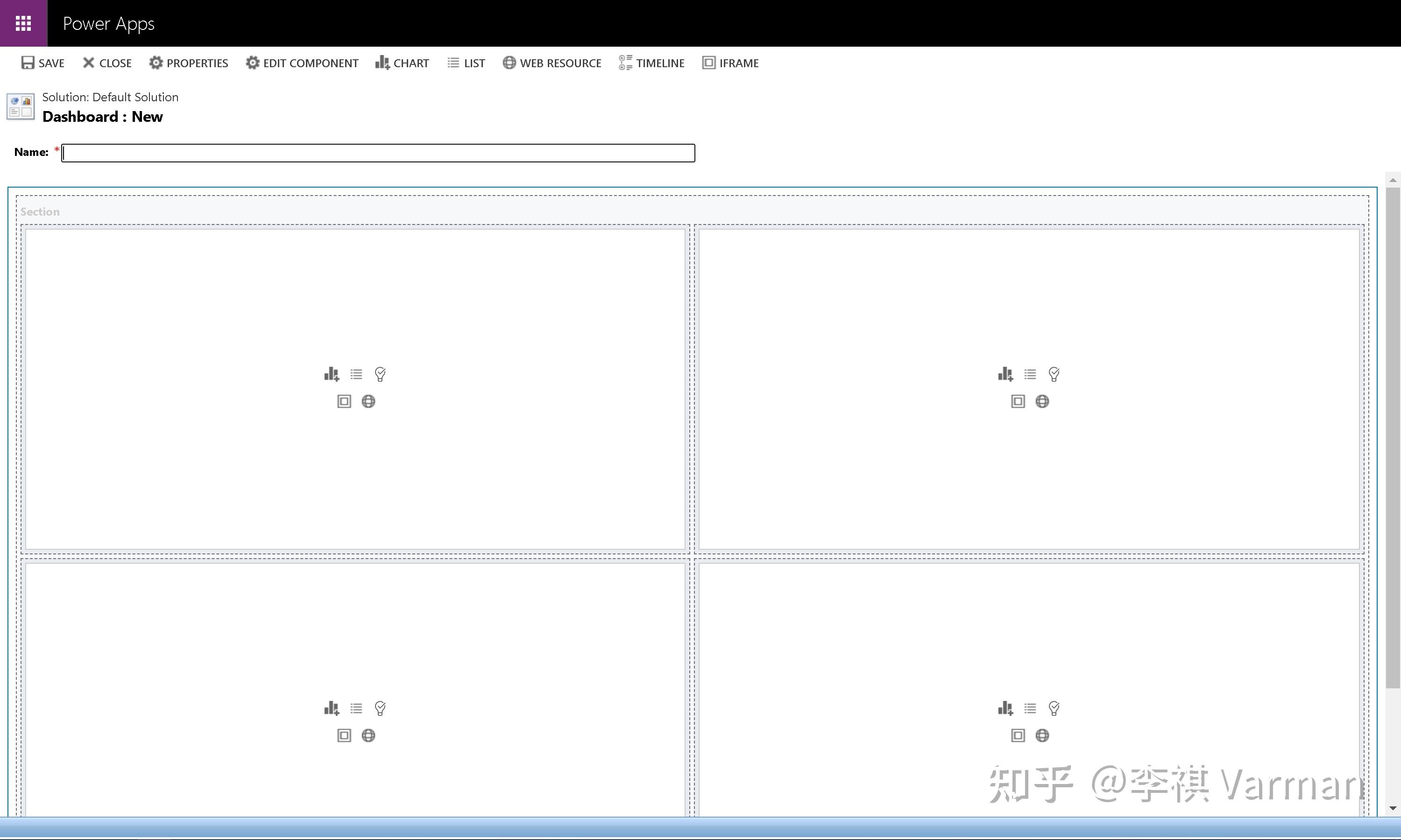 可以看出这种在解决方案中添加的仪表板与在表中添加的仪表板有明显的区别。