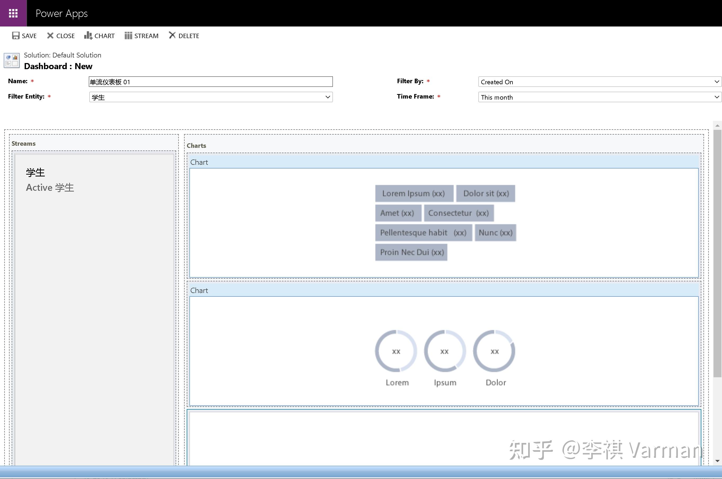上一期中介绍的【基于指定表的仪表板】实际就是一种多流仪表板,只不过当时它的 Stream 只能在当前表中进行选择。而在解决方案中创建的多流仪表板则没有这个限制,至于其他的配置则和【基于指定表的仪表板】一样。