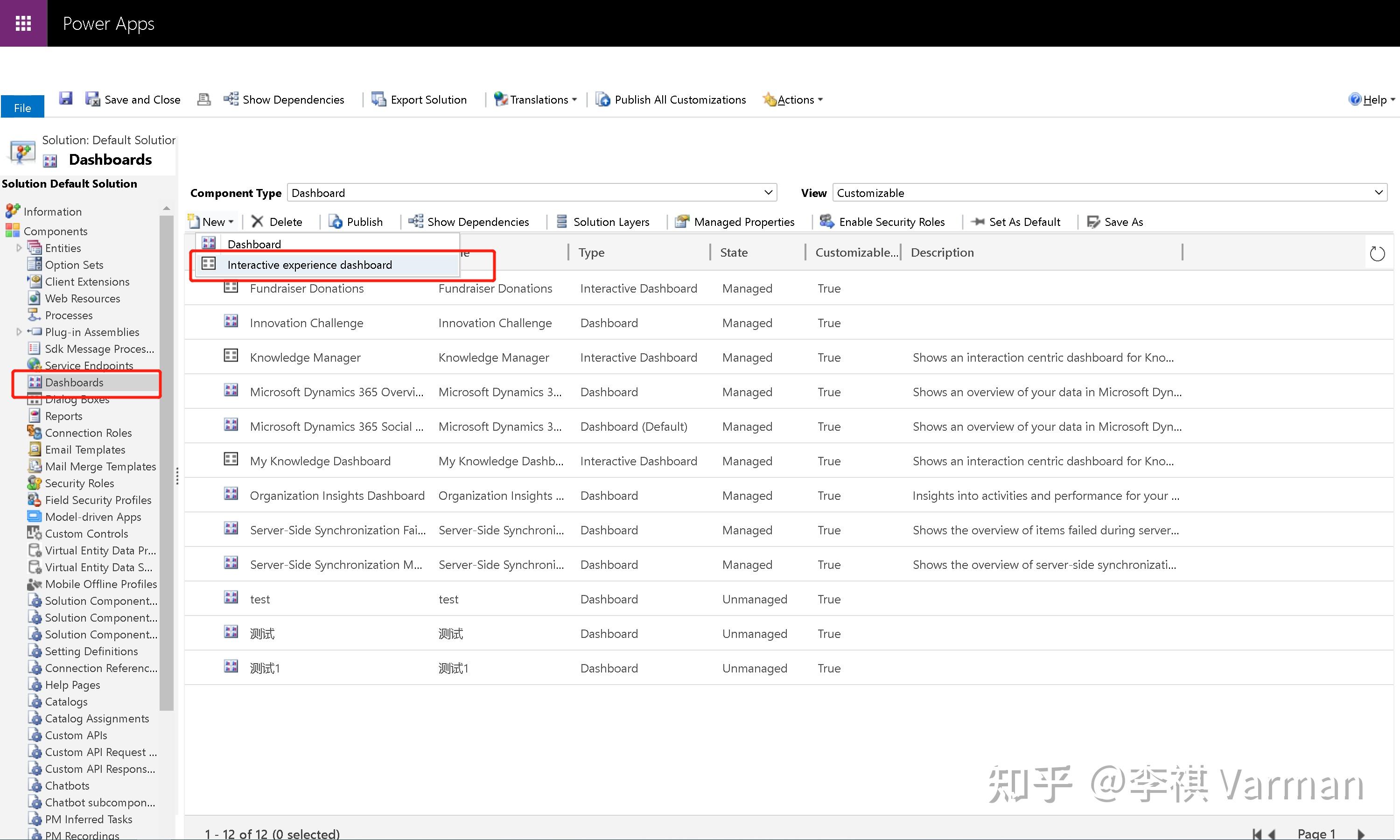 交互式体验仪表板只能在解决方案的经典界面进行添加