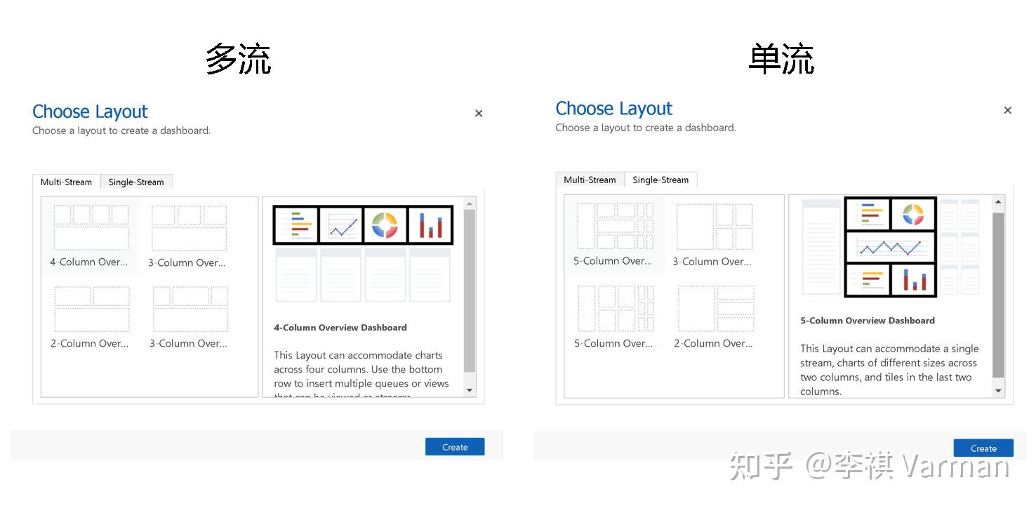 多流和单流的主要区别在于 Stream 中能选择的数量,仪表板的布局方式,以及单流仪表板中没有视觉筛选器