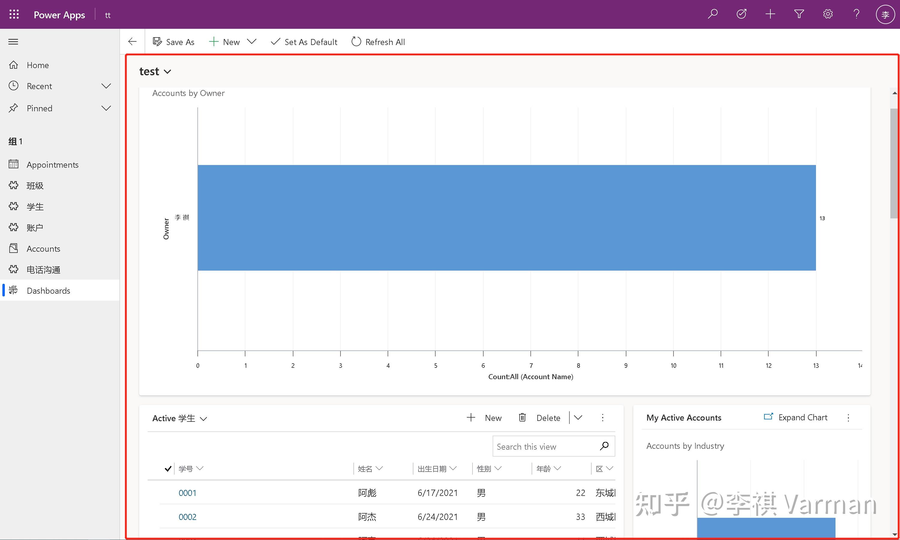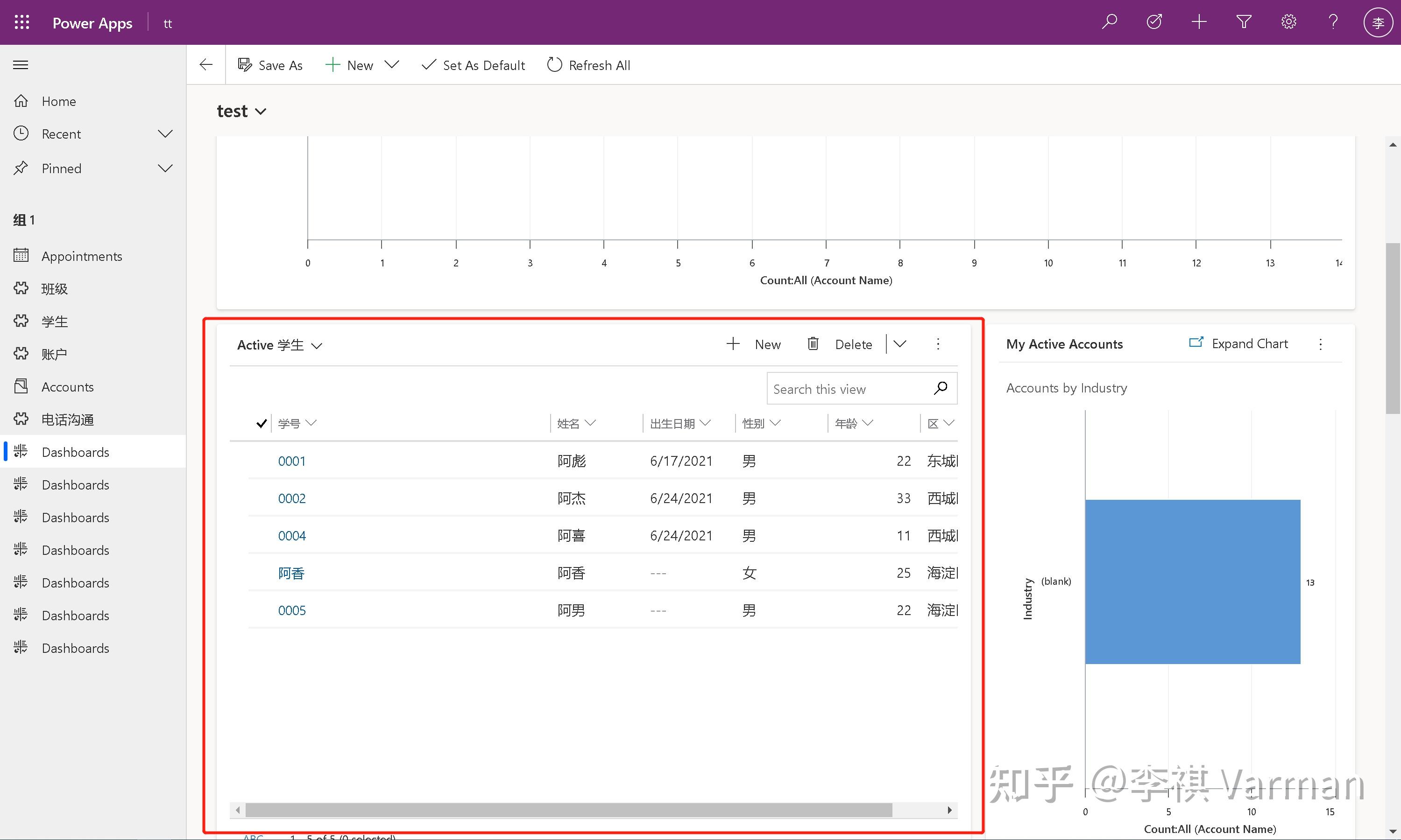 Power Apps 模型驱动应用 第七章 通过给应用添加【仪表板】查看多个表的数据情况